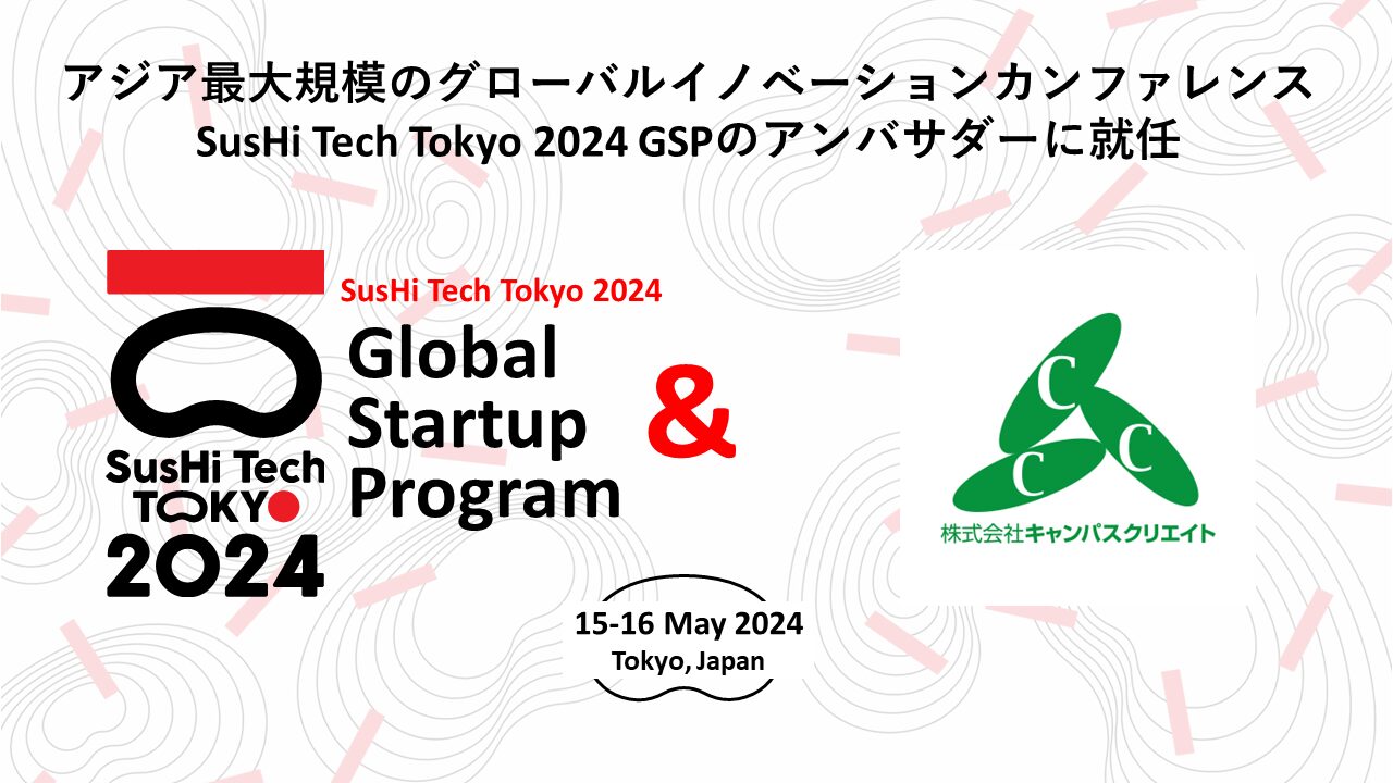 弊社は、2024年5月15日(水)~16日(木)に日本・東京にて開催される、グローバルイノベーションカンファレンス「SusHi Tech Tokyo 2024 Global Startup Program(スシテックトウキョウ2024 グローバルスタートアッププログラム)」のアンバサダー就任が決まりましたのでお知らせいたします。