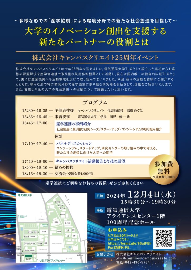 【主催】株式会社キャンパスクリエイト(電気通信大学TLO)