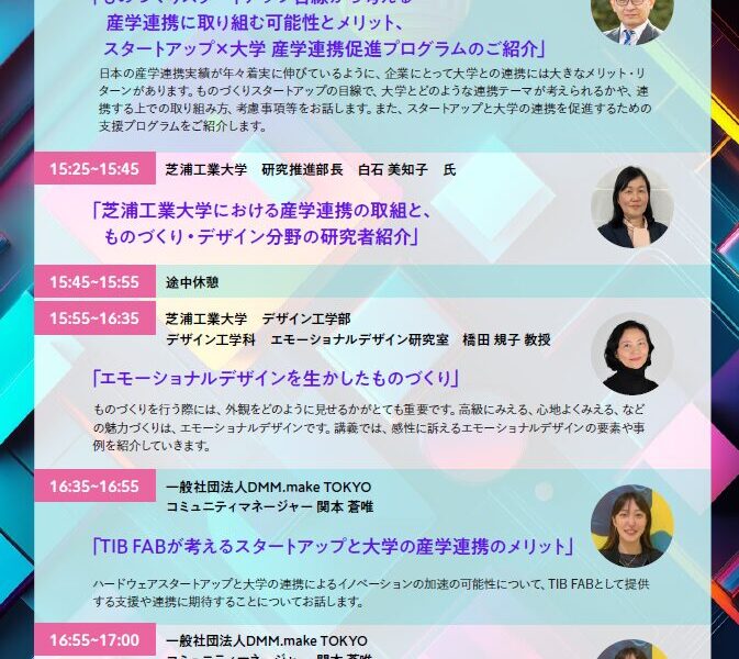 - 16:35 – 16:55 一般社団法人DMM.make TOKYO