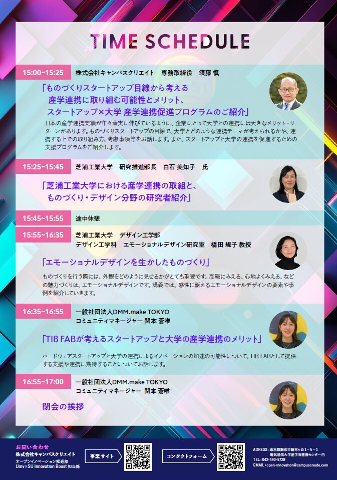 - 16:55 – 17:00 一般社団法人DMM.make TOKYO