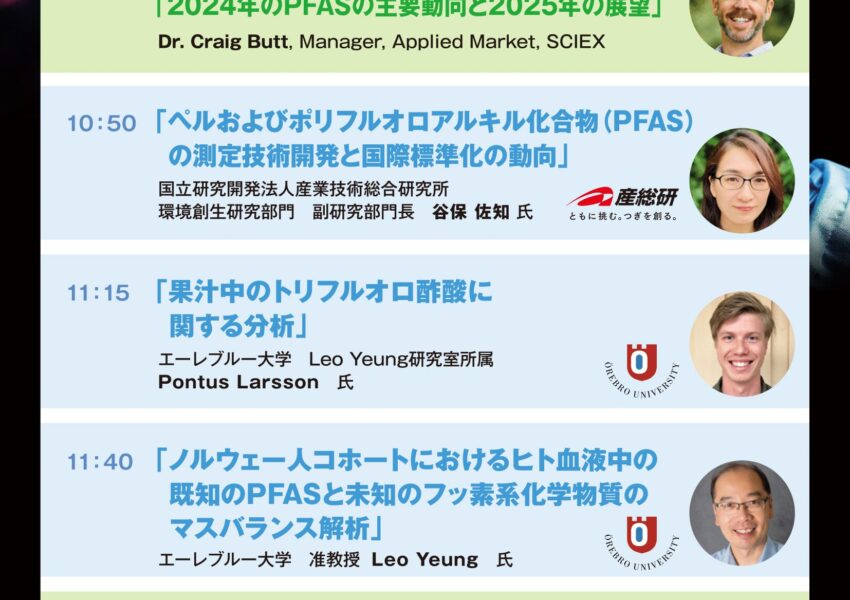 10:50~11:15 講演2「ペルおよびポリフルオロアルキル化合物(PFAS) の測定技術開発と国際標準化の動向」