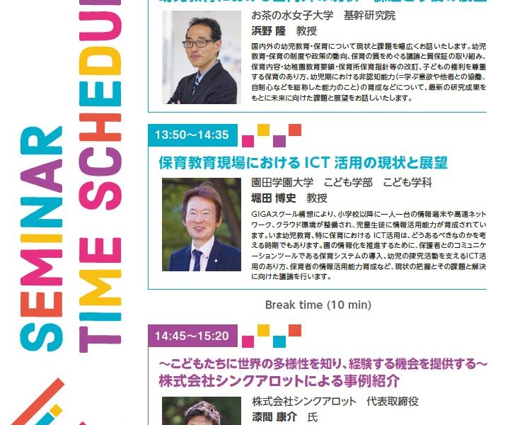 この度、その一環として、幼児教育における国内外の最新動向やICT活用の最前線、そして課題解決に取り組む企業の実践事例をテーマとしたセミナーを開催いたします。