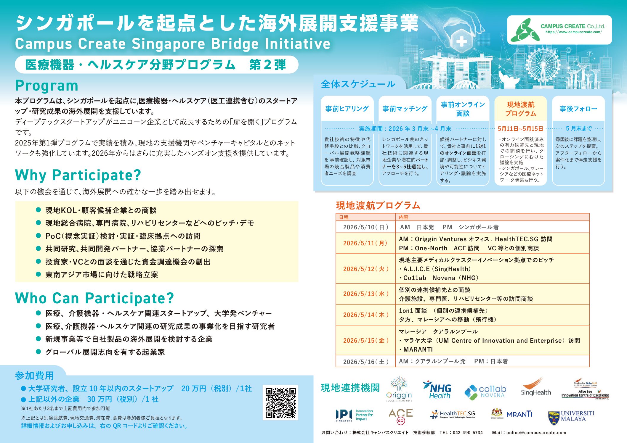 | 2026/5/11(月) | AM:Origgin Ventures オフィス、HealthTEC.SG 訪問 PM:One-North AEC訪問 VC等との個別商談 |