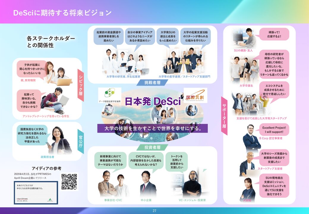 また、DeSciはスタートアップの振興や大学の知の社会還元においても、大きなインパクトをもたらすと考えられます。