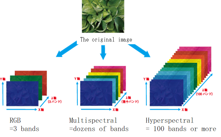 The data captured by a hyperspectral camera is the spectral information of the usual digital image RGB 3 band divided into 141 bands, which is nearly 40 times more than the normal digital image.