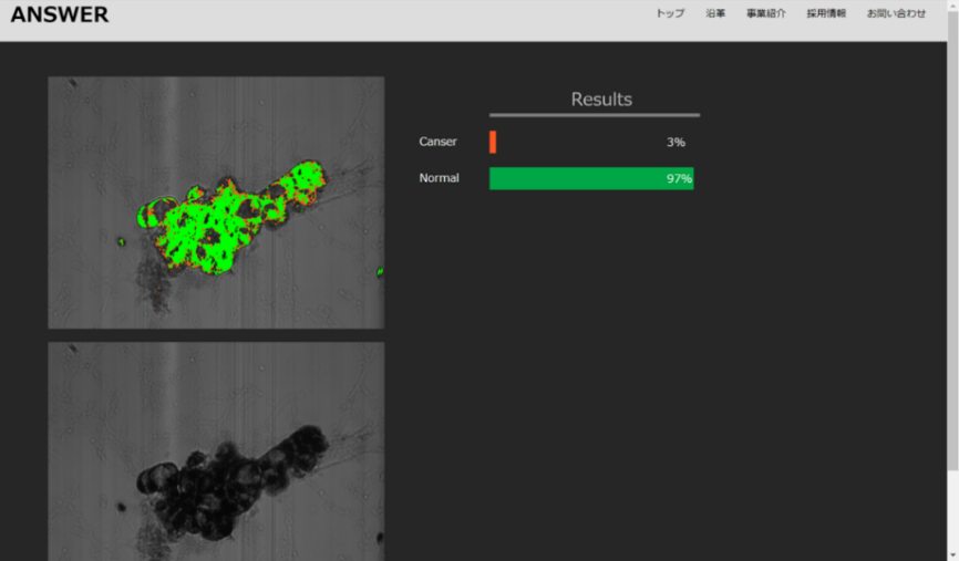 The “ANSWER,” a combination of this hyper spectrum and its unique AI, can be analyzed by machine learning only with several hyperspectral images, and can be classified not only by cancer, non-cancer classification, but also by sub-classification.