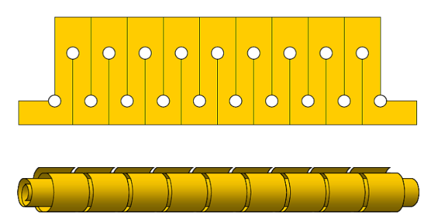 Therefore, we wrapped a polyimide film of a special shape, shown in the following figure (top), to create a tubular-coating material with the structure shown in the figure (bottom).