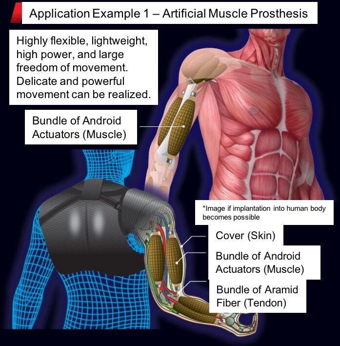 The applications of this artificial muscle are as follows. A variety of applications is possible depending on the ingenuity of the design.
