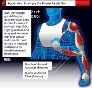 This light, soft material can be attached directly to the human body and generates high power, making it suitable for rehabilitation equipment and power-assisted devices for mounting to human body, which require safety. In particular, because of its light weight and small size, it could be used in nursing services and transportation and warehousing industries, where it is necessary to move around with the power-assisted devices attached to the human body.