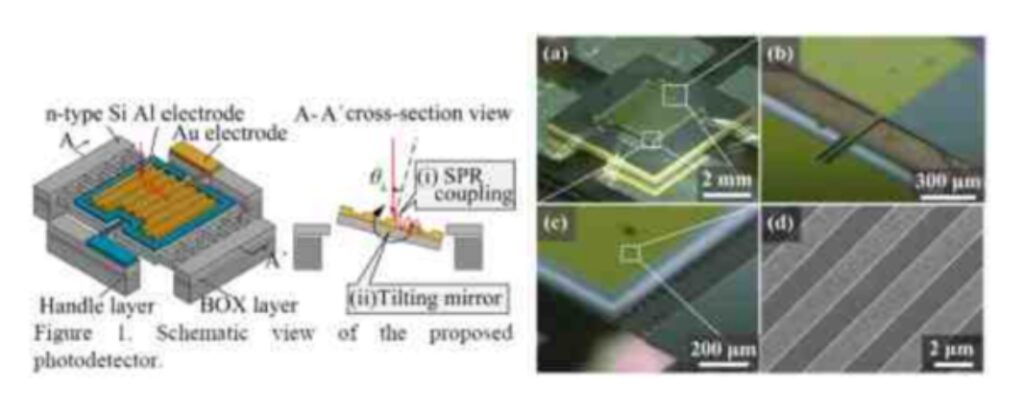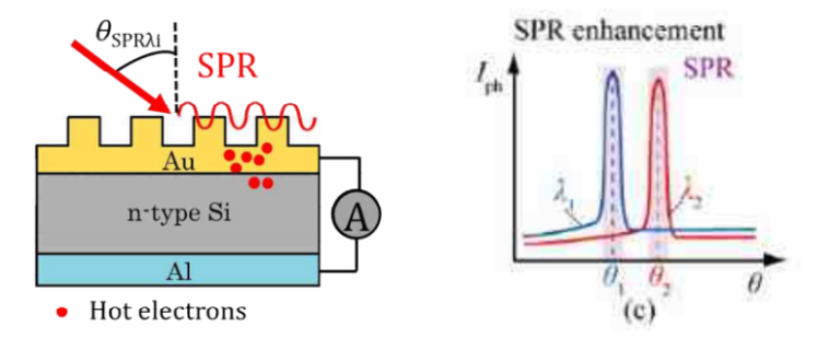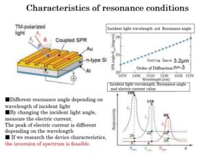 In this study, Au (gold) is deposited on Si (silicon) surfaces, and the diffraction grating is formed by an uneven structure on Au. The formation of this grating is done by the MEMS process. Depending on the condition of the incident angle and the wavelength of the light when the light hits, the resonance is generated by the surface plasmon phenomenon, and the current generated by the resonance is measured by the detector.