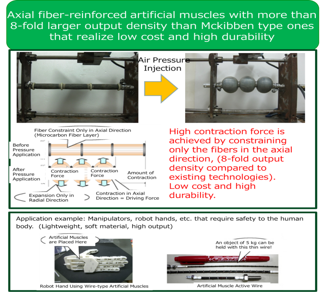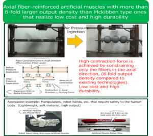 Axial fiber-reinforced artificial muscles with more than 8-fold larger output density than Mckibben type ones that realize low cost and high durability