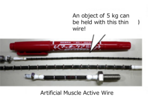 Even though it is thin as 0.9-3 mm in diameter, it can lift up about 50 N because of its large contraction force as an artificial muscle.