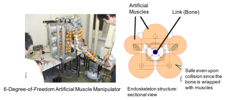 Conventionally, robots capable of performing such complex tasks have had the disadvantages of being very heavy with stiff joints and a weight of more than 50 kg. Also, because of its hard structure, there was a risk of injury if a human came into contact with it.