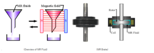 By arranging MR fluid around the inner disc and altering the viscous friction on the disc surface in accordance with the change in magnetic field, the torque can be continuously controlled in response to the rotational movement.