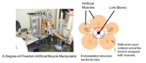 In Nakamura group, we have developed an artificial muscle with an out density eight-fold higher than that of the Mckibben type ones, which is low cost and has high durability. It can be a suitable actuator for mechanical systems that have many opportunities to come into direct contact with humans, such as rehabilitation robots and human body-mounted power assist devices. Since it can be driven in water and powder, it can also be used as an alternative for pneumatic cylinders in factories.We welcome companies that are motivated to commercialize and utilize this technology.