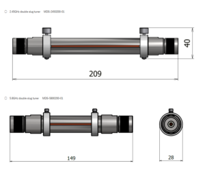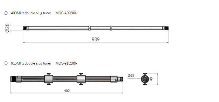 - Manual tuner with double slug structure for easy handling (unit: mm. The figure below is for the 2.45GHz manual tuner).