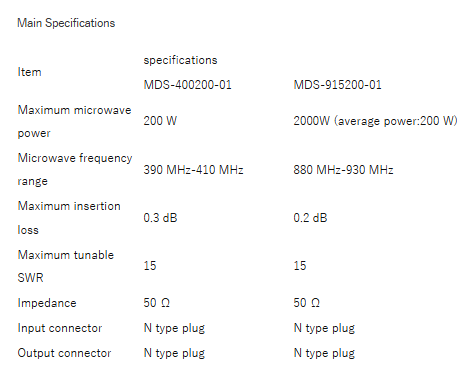 There are 5 MDS-400 for 400MHz, MDS-915 for 915 MHz, MDS-2450 for 2.45GHz and MDS-5800 for 5.8GHz.