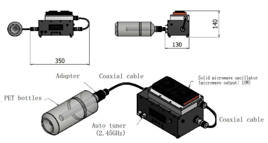 For the users convenience, microwave power source, heat sink and cooling fan are integrated into the control box. So, users can use without assembling those parts and can oscillate the microwave power by adjusting microwave power, frequency, which are shown on the LCD monitor.