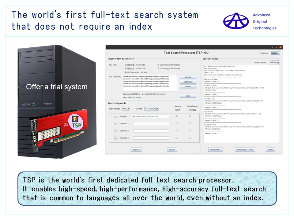 - A fourth Memorism Processor, a full-text search processor (TSP), has also been completed.