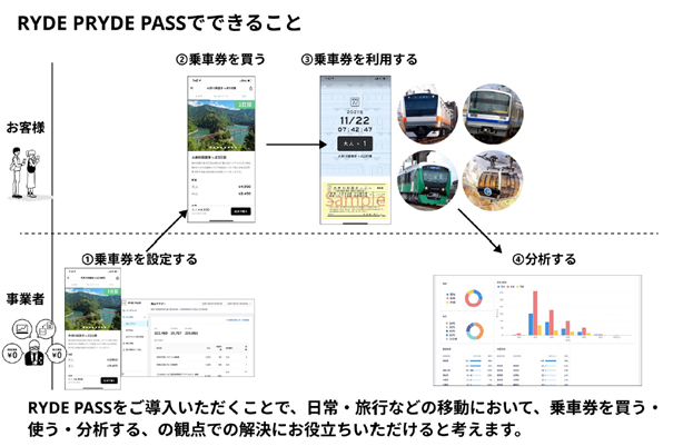 同社が展開するRYDE PASSは、公共交通において従来IC化が難しかった乗車券や、現在も紙券・磁気券での運用が続いているチケット類を、スマートフォンアプリを通じてデジタル化するサービスです。利用者にとっては使いやすく、交通事業者や自治体にとっては管理しやすい環境を一つのアプリケーションで実現することを目的に開発・提供されています。