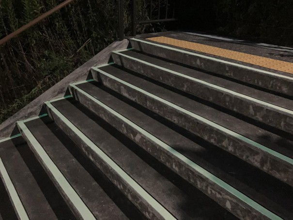 (6)視覚障害者向け階段の視認性改善——照明1本分のコストで夜間も安全に
