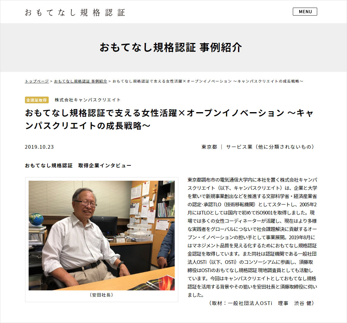 産学官連携・オープンイノベーションを適切に推進するにあたっては、大学・企業等が双方で信頼関係を保ちながら円滑にプロジェクトを進められるよう、弊社のように間を取り持つ第三者組織には、産学官連携コーディネータ個々人のサービス精神の徹底および組織としてのサービス品質マネジメントシステムの運用は必須です。