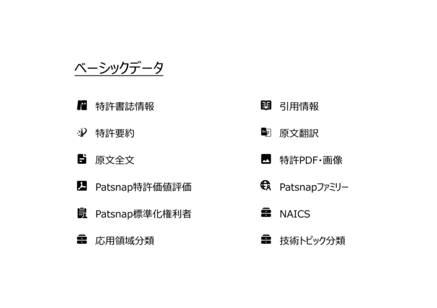 Patsnap Analytics - 特許検索/分析Analyticsは、特許・技術・競合を横断的に分析するコア製品です。世界中の特許データ、非特許文献、企業情報を統合し、グローバルデータでFTO(Freedom to operate)と先行技術調査を強化。R&D戦略・知財戦略・投資判断を支援します。大学の研究者や産学連携担当者が、特許戦略を立てる際に役立ちます。