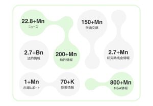 35億件以上の専門家監修による長年培ってきた知財・研究開発データは中核的な資産であり、LLMトレーニングの重要な教材です。業界検証済みのデータにより、汎用の大規模言語モデルによく見られる幻覚(hallucination)の問題を最小化します。