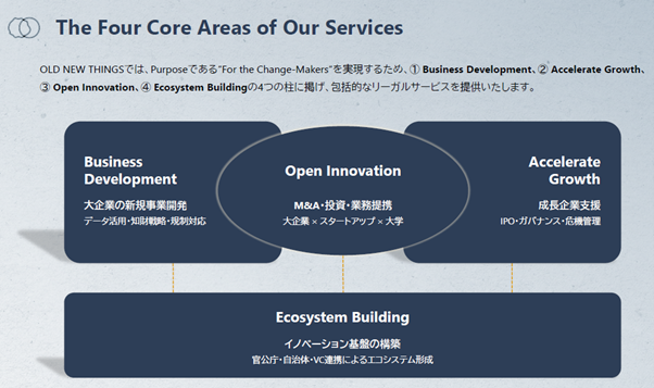 OLD NEW THINGS法律事務所は、新規事業と成長戦略支援に特化し、スタートアップの変革への挑戦を法務の面から力強く支えるプロフェッショナルファームです。海外展開を目指す企業にとって、同事務所の支援がもたらす価値は以下の点に集約されます。