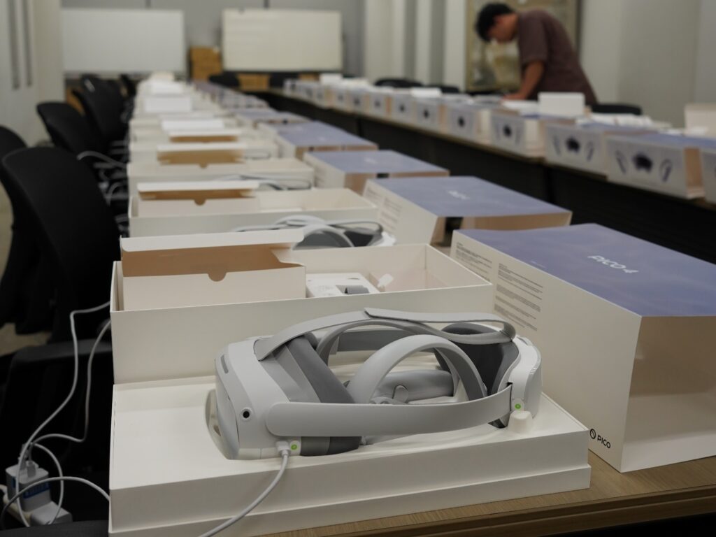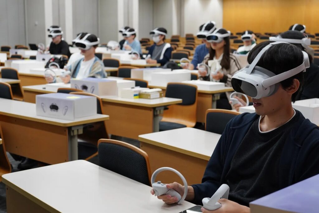 お話を伺った当初は、正直「課題が山積みだな」と感じました。 約100分の授業を全14回、しかもVR初心者の学生全員がヘッドマウントディスプレイ(HMD)を装着して行うわけです。
