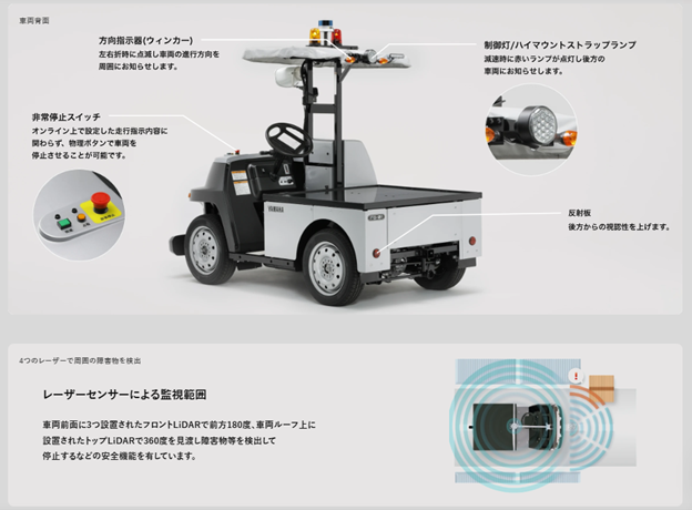 - 段差:±3cm乗り越え、傾斜:最大7°(自動運転・1t牽引時)に対応