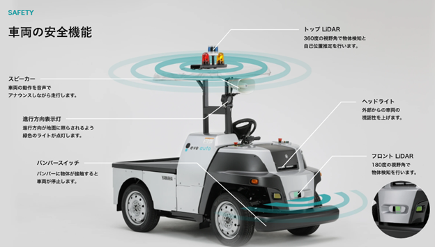 eve auto(イヴ・オート)は、「工事不要」「サブスクリプション型」「屋外対応」という3つの特長を兼ね備えた、工場・物流施設向けの自動運転無人搬送ソリューションです。ヤマハ発動機のゴルフカー技術とTIER IVのAutowareを融合させることで、従来の自動化手段が届かなかった「建屋間搬送」という課題に正面から向き合っています。