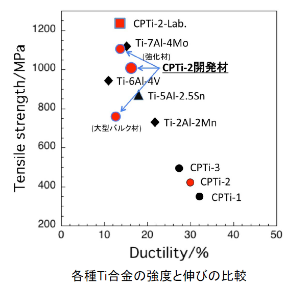 金属は純チタンとマグネシウム合金が対象ですが、純チタンはチタン合金と同等以上の高強度性、マグネシウム合金は超々ジュラルミンを超える引張強度を実現しています。